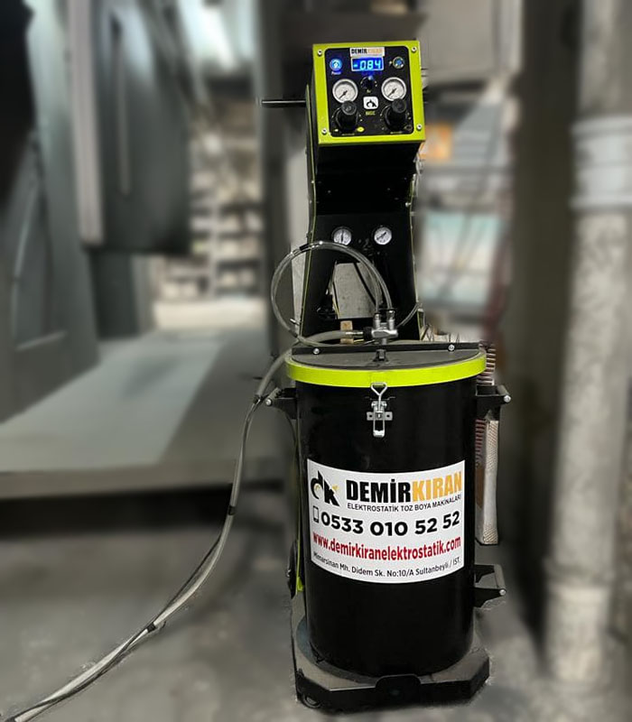 Demirkıran Elektrostatik Toz Boya Ekipmanları Manuel ve otomatik boya makineleriyle hassas ve verimli uygulama imkânı sunar. Uzun ömürlü ve düşük bakım gerektiren çözümlerle üretimi destekler.